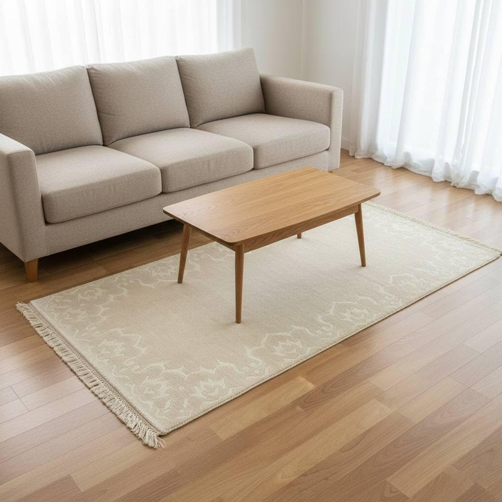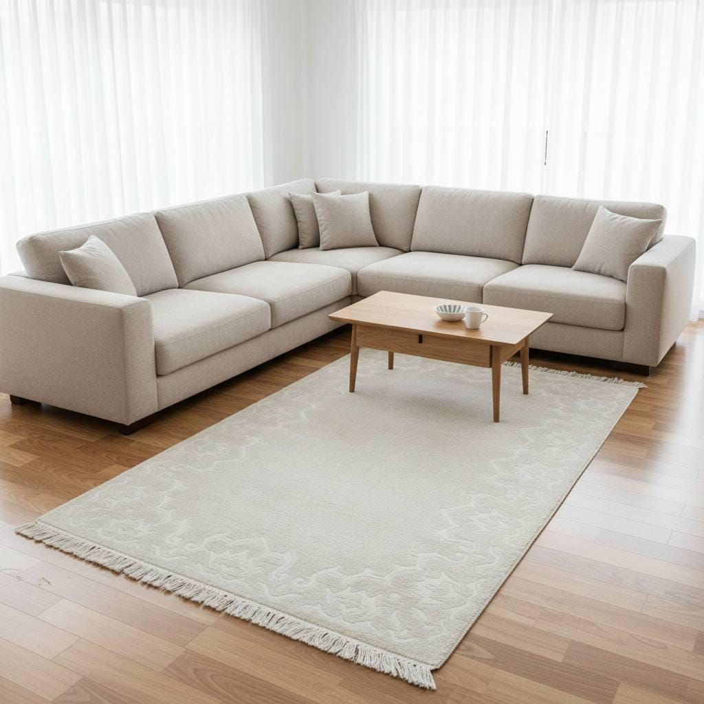 Bring subtle elegance and timeless texture into your home with this handwoven Turkish wool rug. Designed with a soft neutral ivory tone and delicate tone-on-tone Anatolian border pattern, this rug blends beautifully into modern, Scandinavian, and minimalist interiors. Its understated design allows it to complement a wide range of décor styles while adding warmth, texture, and authentic craftsmanship to your space.