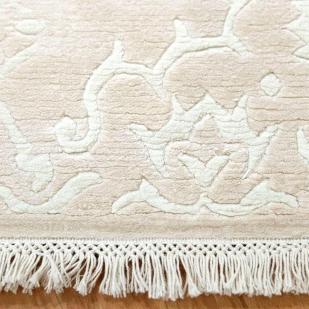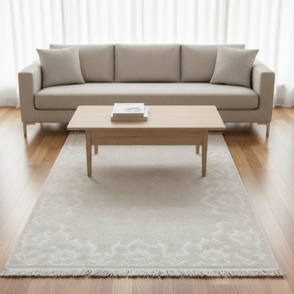 Soft ivory tones with a subtle raised border pattern create a calm, elegant look that fits Scandinavian and modern interiors.
