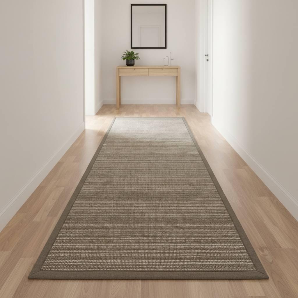 Bring modern simplicity and functionality to your home with this elegant Turkish polyester runner rug, designed specifically for hallways, entryways, and narrow spaces. With its minimalist woven texture and optional border design, this stylish corridor rug adds warmth and balance to contemporary interiors while remaining durable and easy to maintain. Available in white, beige, brown, and grey, it blends effortlessly with Scandinavian, modern, and neutral home décor.