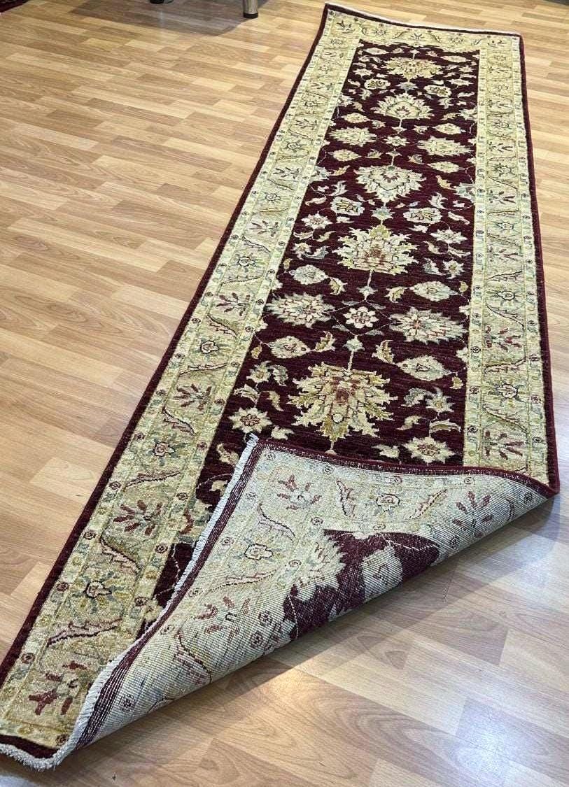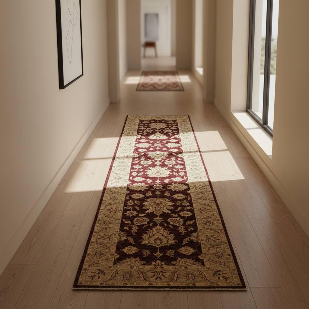 Bring timeless craftsmanship into your home with this handwoven Afghan runner rug, featuring a rich red oriental pattern and elegant traditional motifs. Carefully woven using traditional techniques, this vintage-style runner adds warmth, texture, and character to hallways, entryways, kitchens, and narrow spaces.
