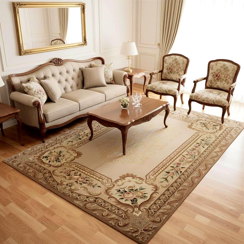 This elegant rug works beautifully in traditional interiors, luxury homes, vintage décor settings, and refined modern spaces.