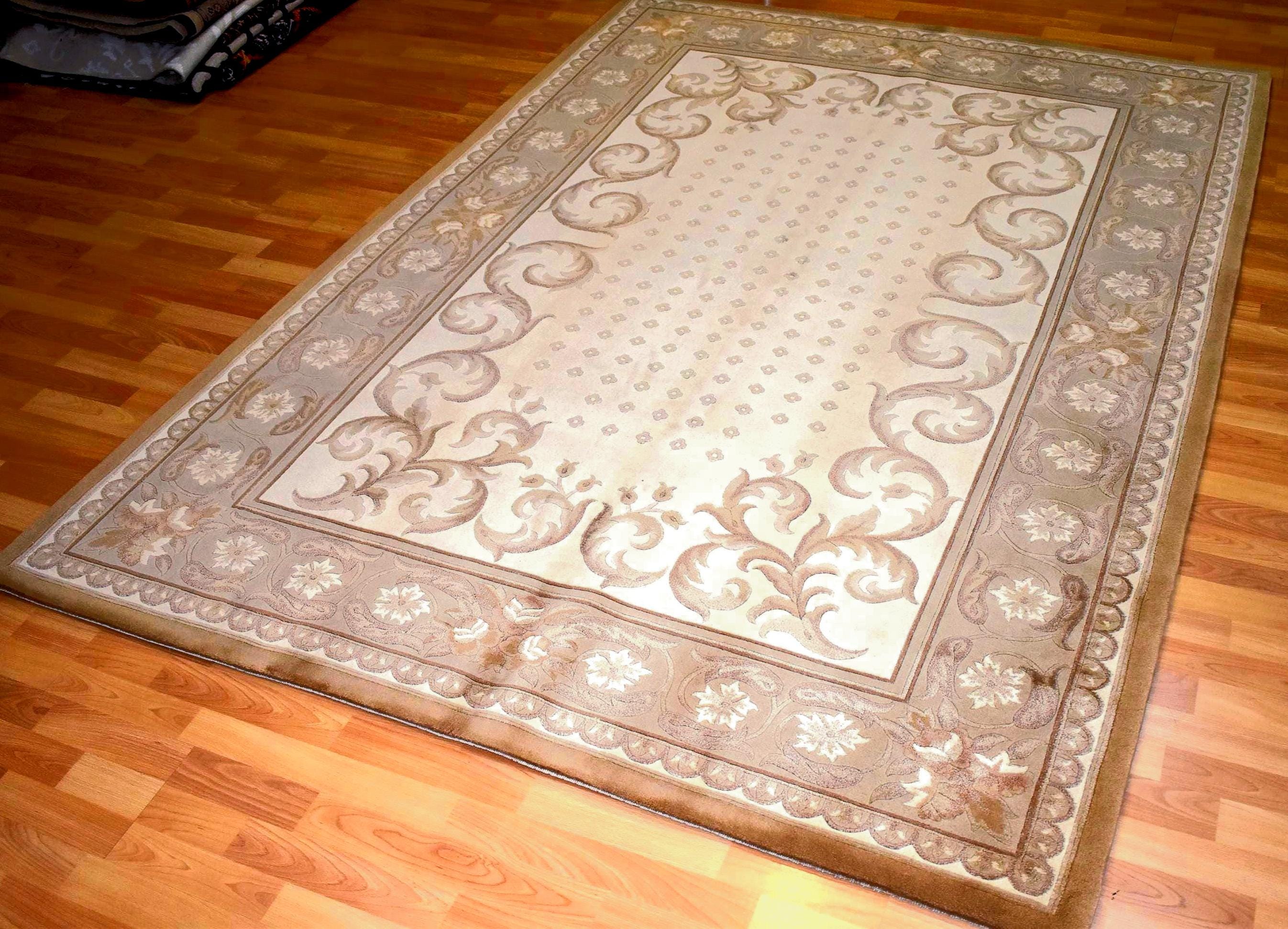 Handwoven Chinese Wool Rug 5.6x7.9 ft Beige Oriental Area Rug Traditional Floral Carpet Classic Living Room Decor One of a Kind