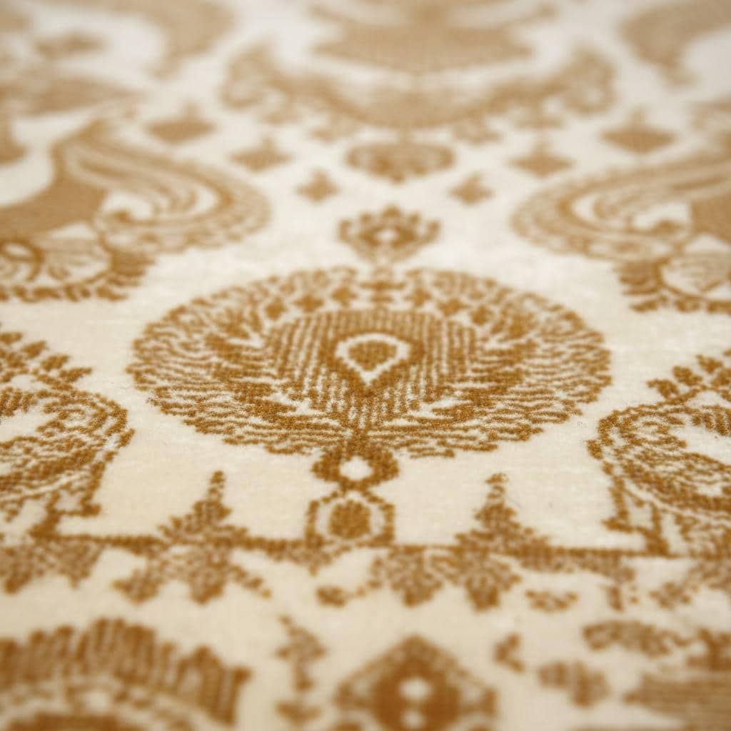 The soft cream background combined with warm gold motifs creates a sophisticated and inviting atmosphere. Its classic oriental floral pattern blends beautifully with both traditional and modern interiors.