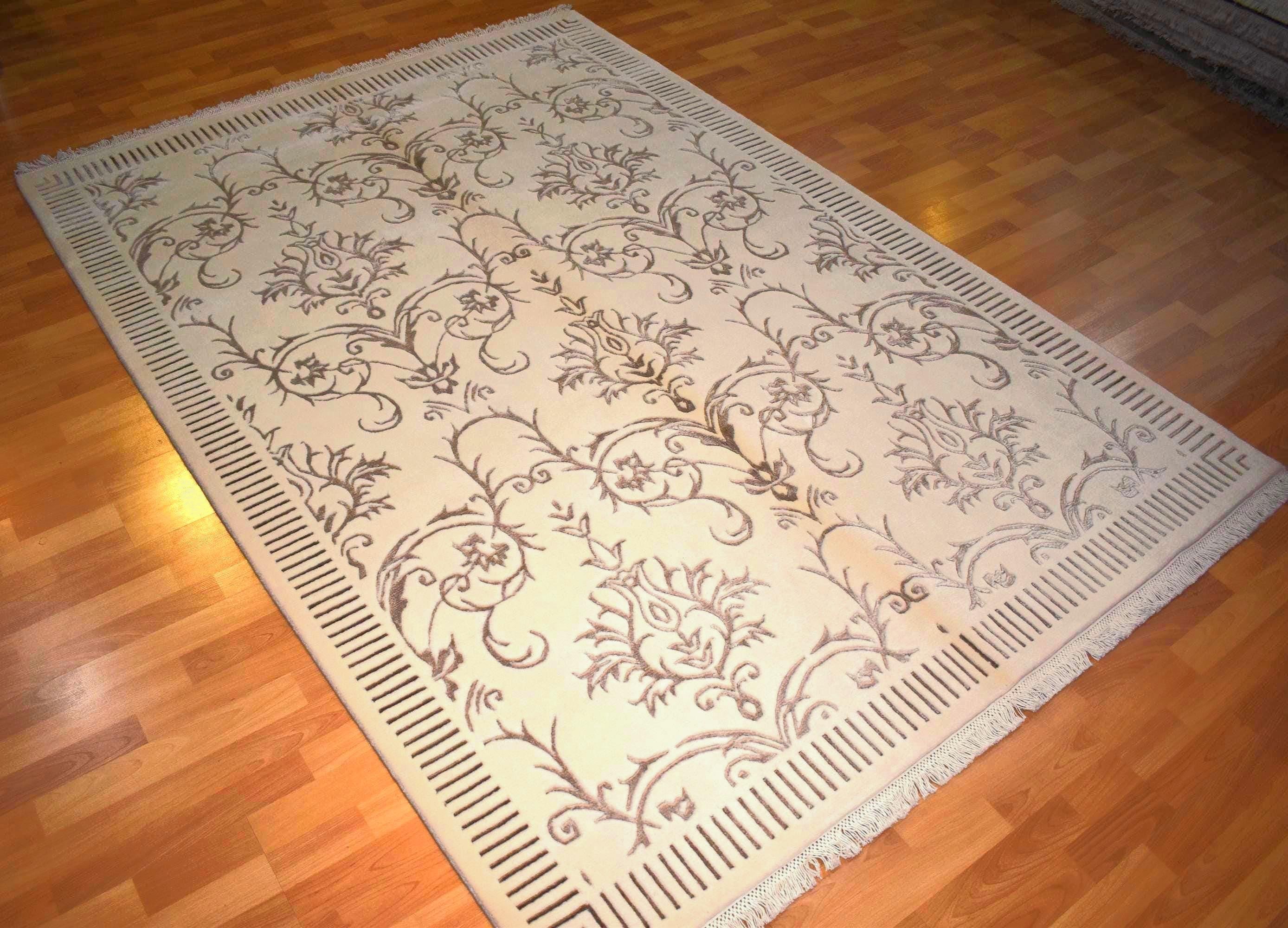 Hand Knotted Wool Silk Rug 6.5x10 – Luxury Floral Area Rug, Handmade Oriental Carpet, Large Living Room Rug, Free Express Shipping USA