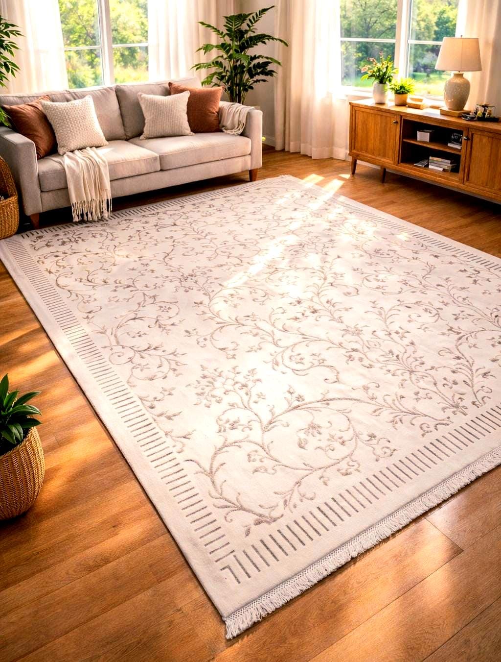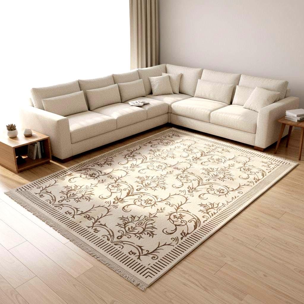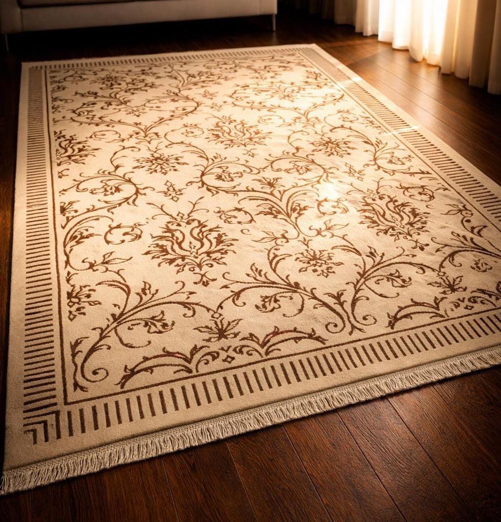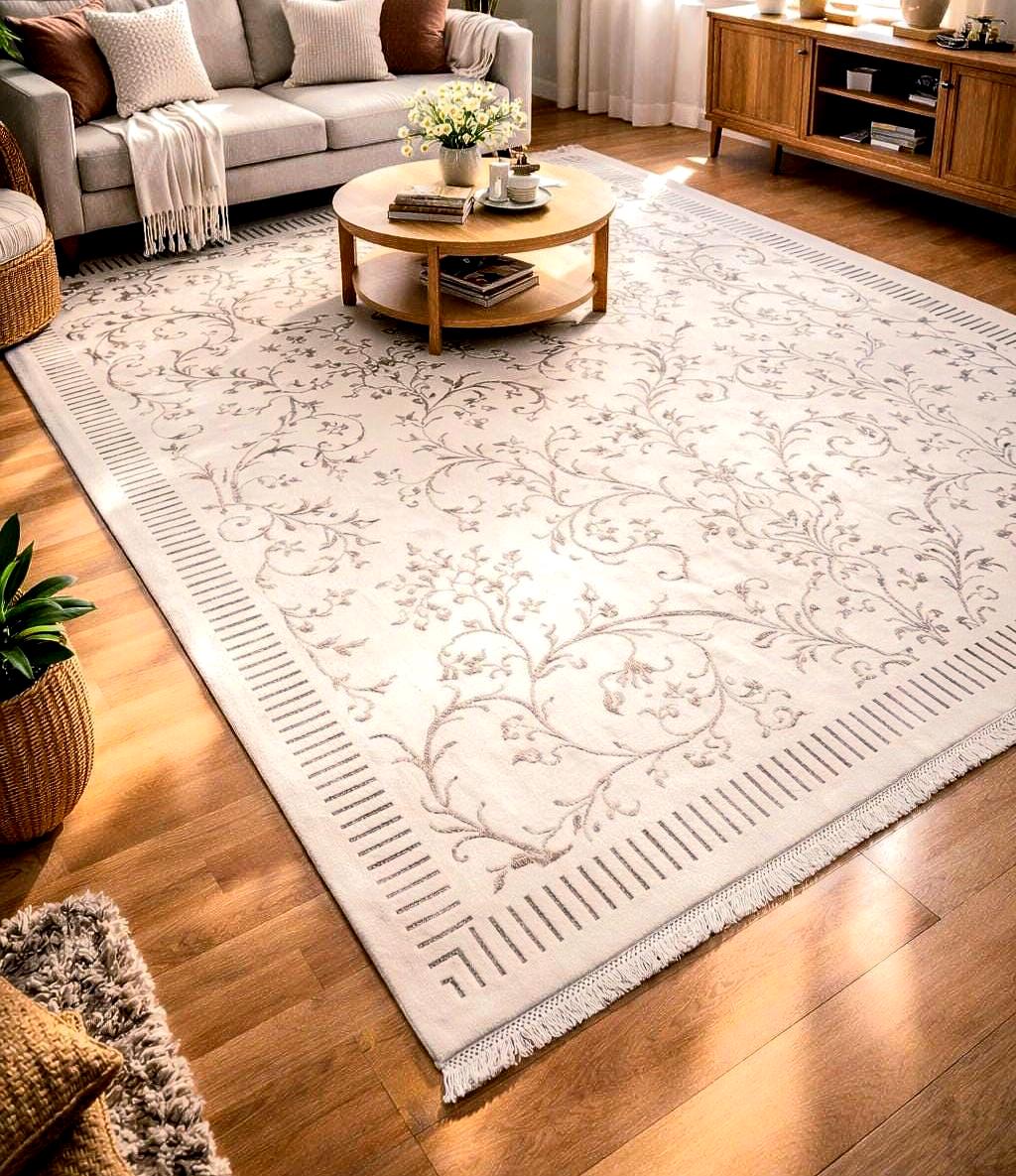 The soft ivory tones and delicate floral pattern create a calm, sophisticated atmosphere — perfect for luxury living rooms, elegant interiors, and modern classic spaces.