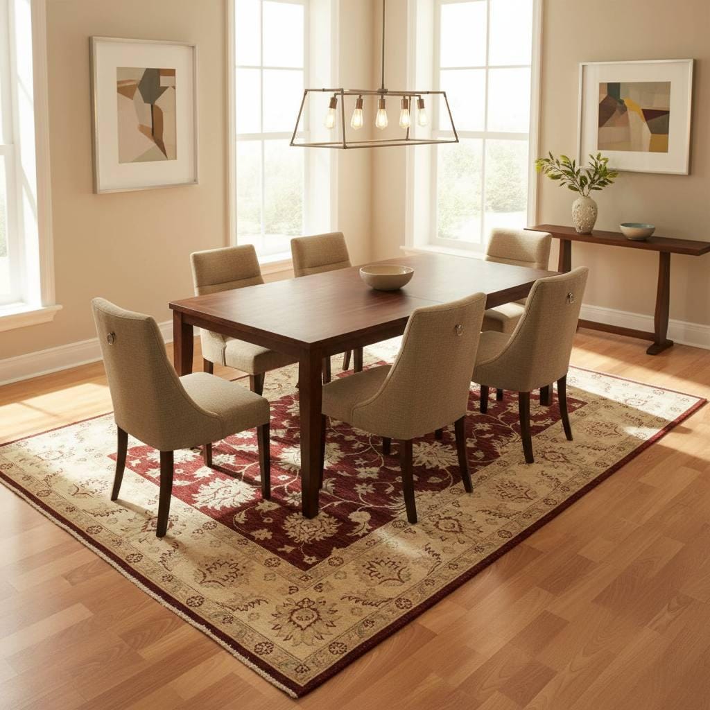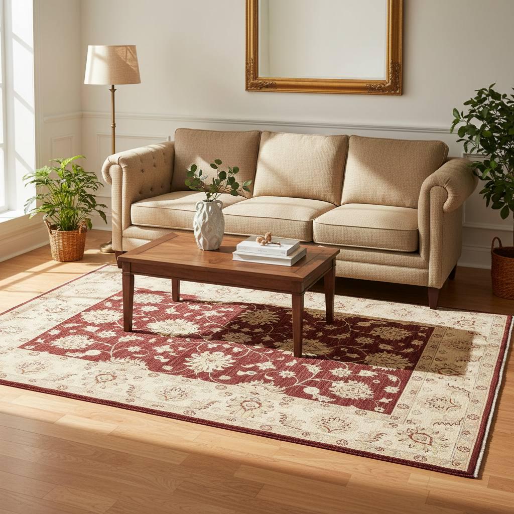 The warm red tones combined with classic floral patterns make this rug a stunning centerpiece for a living room, dining room, or bedroom. Its durable wool construction provides both comfort and long-lasting use, while the traditional design blends effortlessly with boho, classic, vintage, and modern interiors.