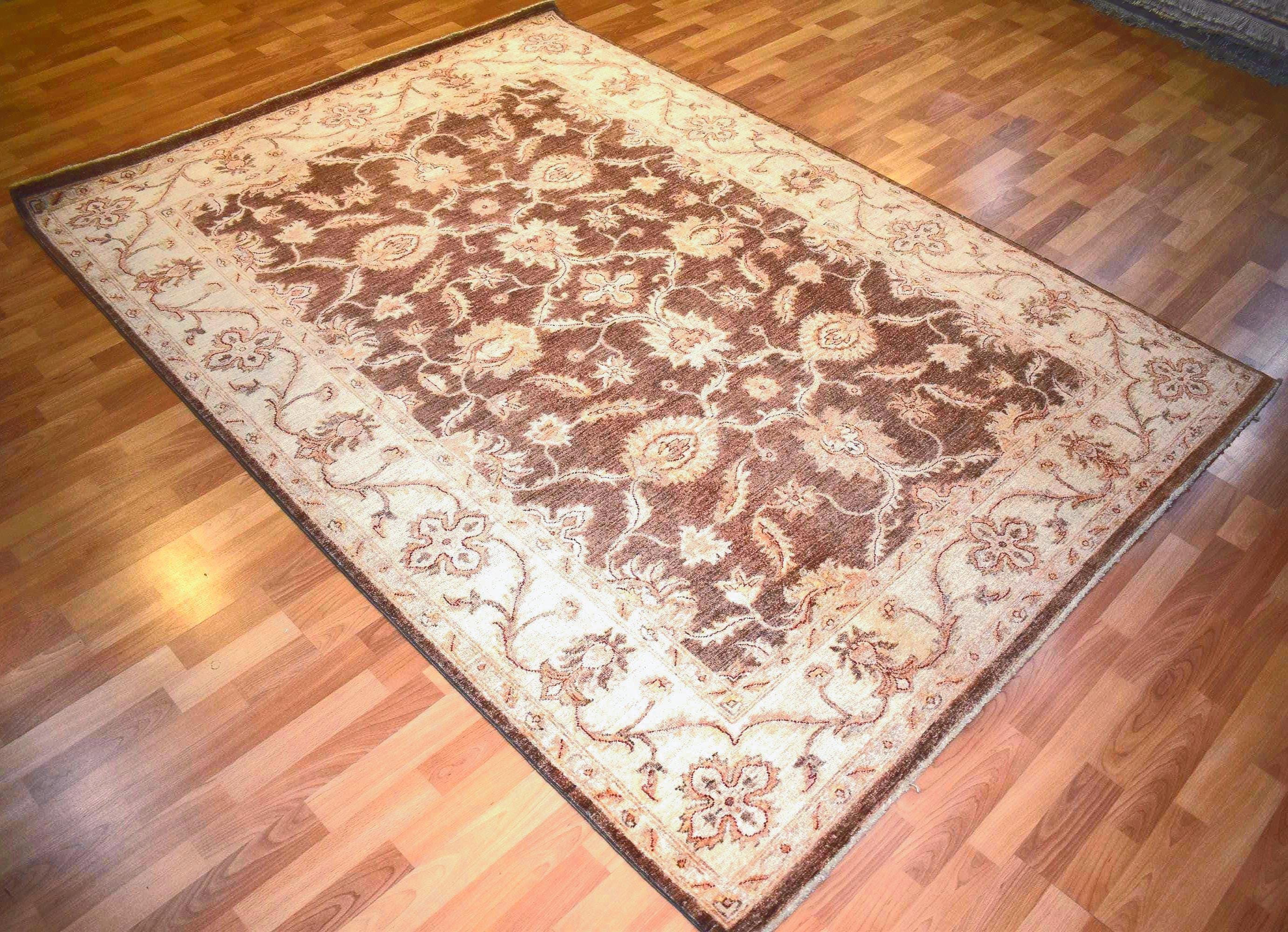 One of a Kind Handwoven Afghan Wool Rug 8x6 Ft Brown Tribal Oriental Carpet Traditional Vintage Area Rug Living Room Decor