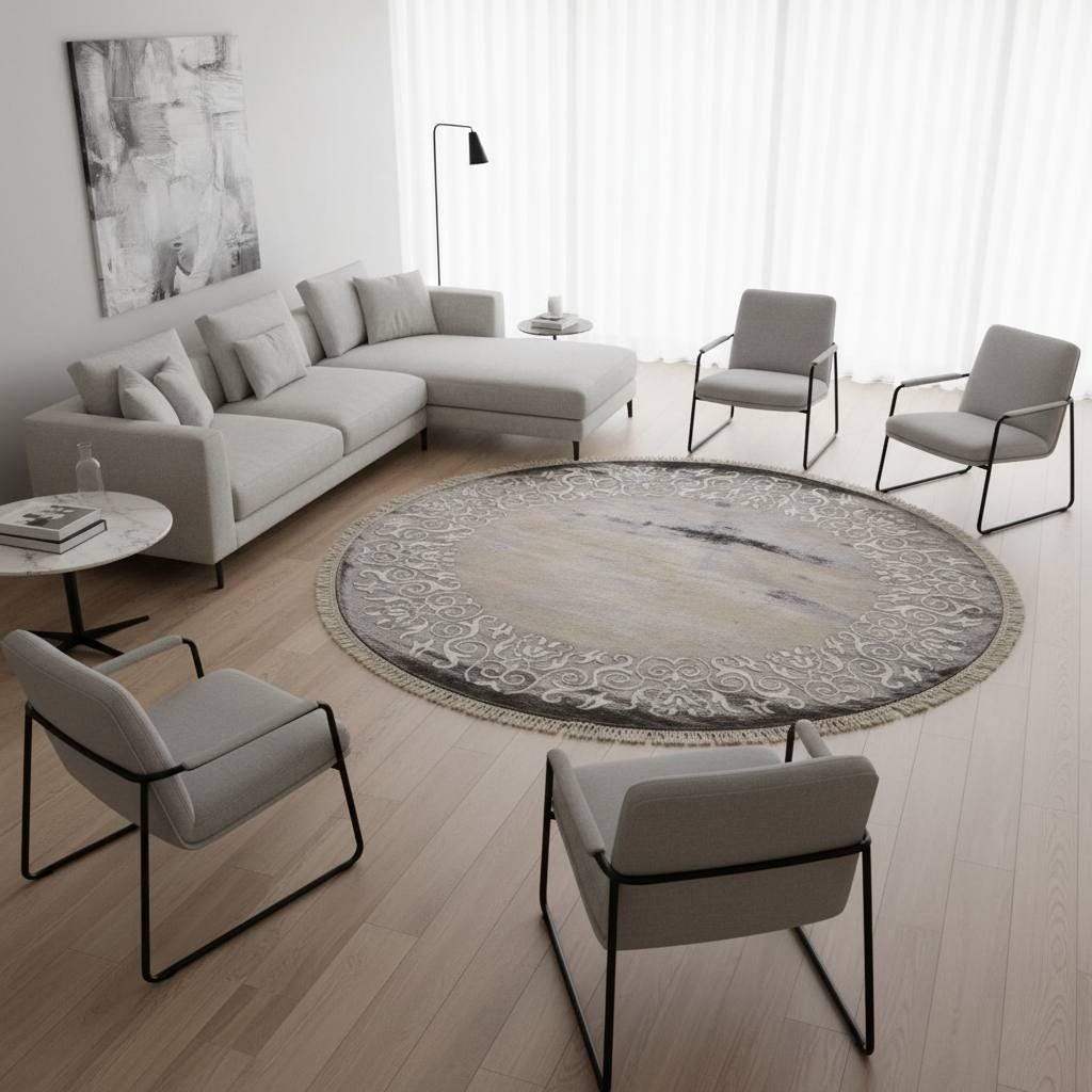 ✨ A sophisticated round statement rug designed to elevate modern, boho, and classic interiors.