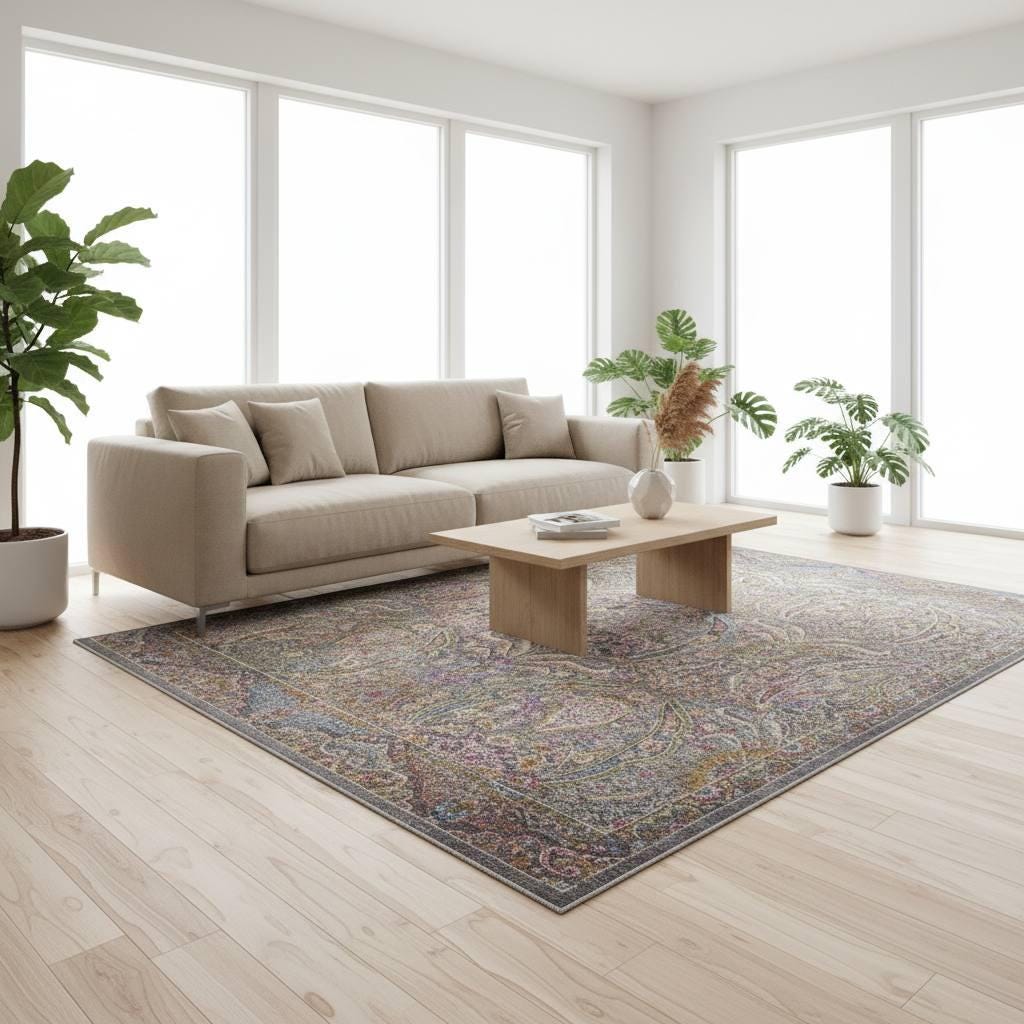 Add timeless elegance and vibrant character to your home with this Turkish inspired modern traditional area rug. Featuring a richly detailed oriental pattern with colorful vintage motifs on a soft neutral background, this rug blends classic Persian design with modern durability. Perfect for living rooms, bedrooms, dining rooms, and hallways.