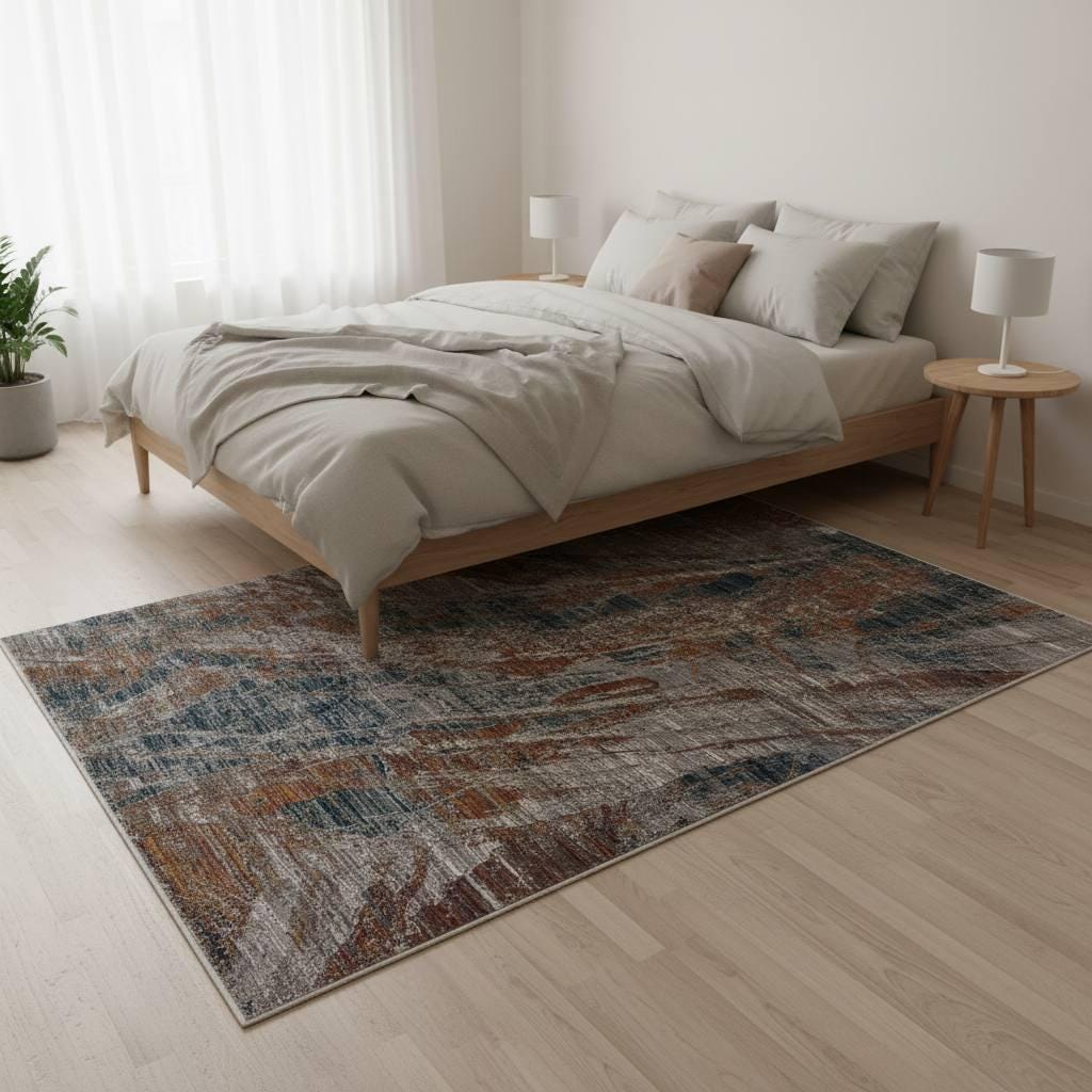 Crafted from durable acrylic fibers, this rug offers both style and long-lasting comfort. Its abstract pattern creates a sophisticated focal point in living rooms, bedrooms, or offices.
