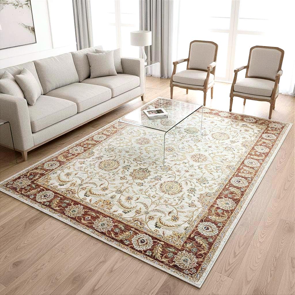 Its elegant ivory background and warm borders make it easy to combine with both light and dark furniture.