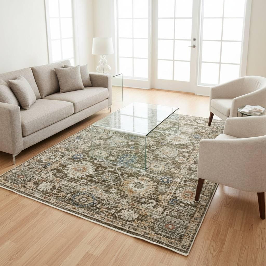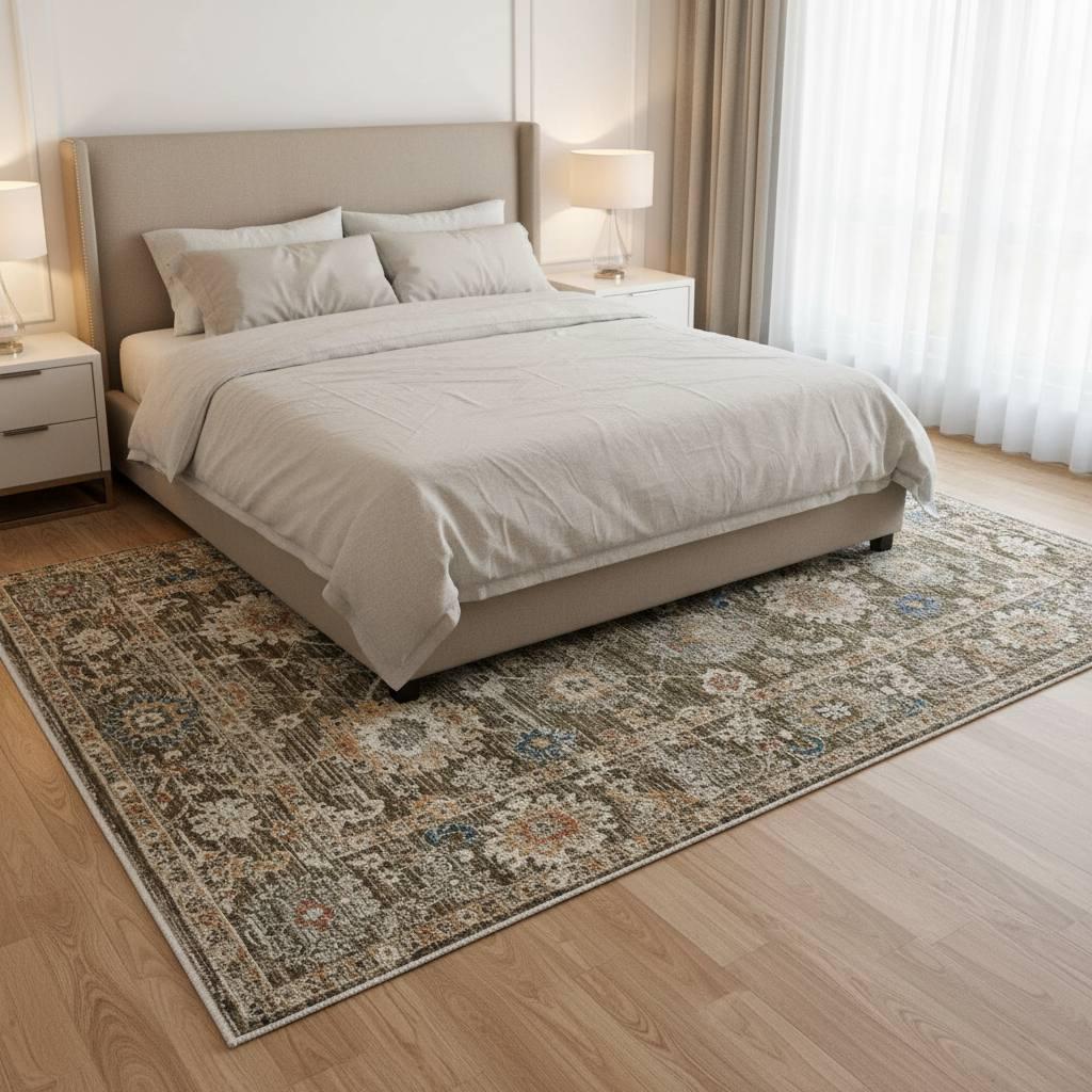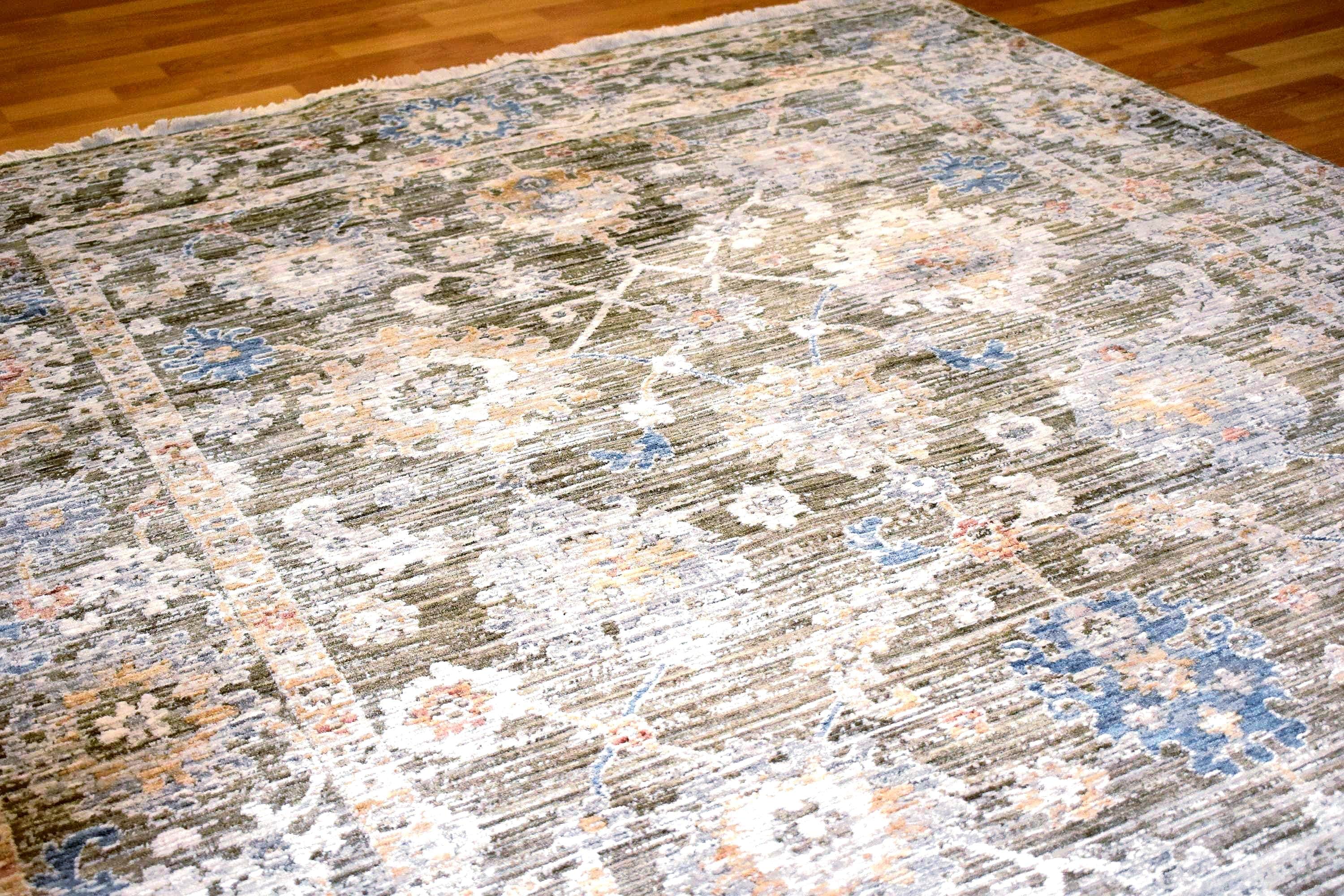 This elegant Turkish Oushak style area rug features a beautiful vintage oriental design with soft earthy tones and delicate floral motifs. Inspired by classic Anatolian carpets, this rug blends traditional charm with modern comfort. Available in two sizes, making it easy to find the perfect fit for your living room, bedroom, or dining space.