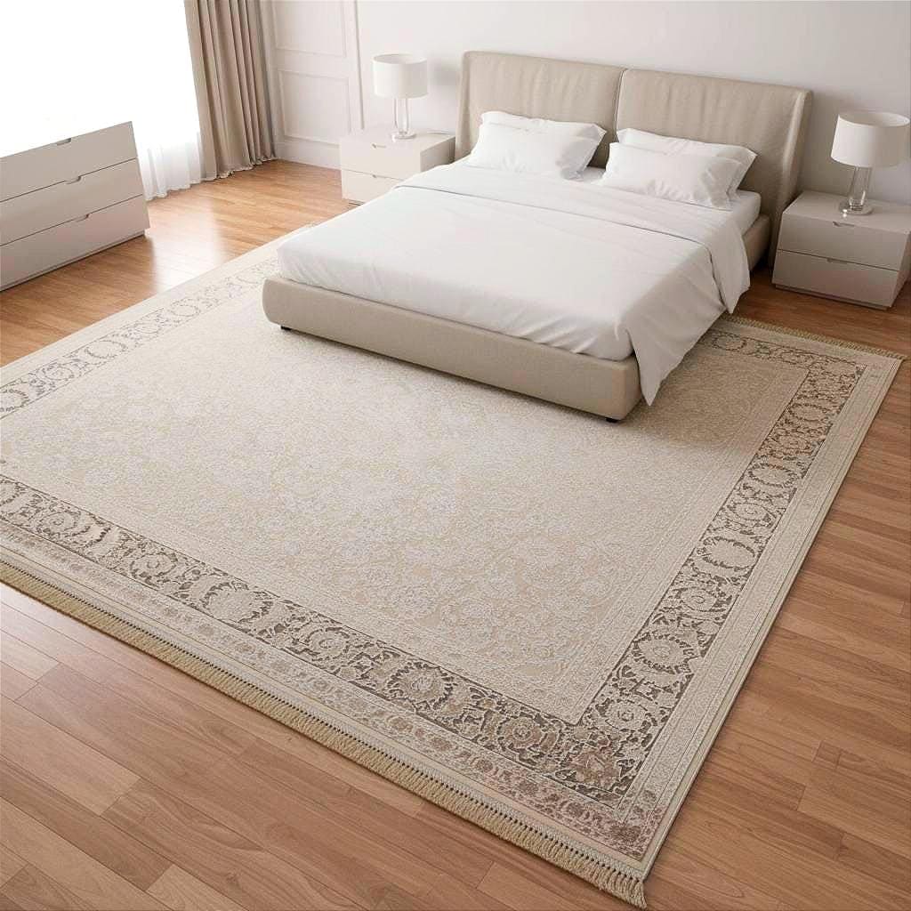 Create a bright and elegant atmosphere with this large beige cream area rug, featuring a subtle tone-on-tone floral design with a decorative border. Its soft neutral palette makes it perfect for modern, classic, and minimalist interiors, adding warmth without overwhelming your space.